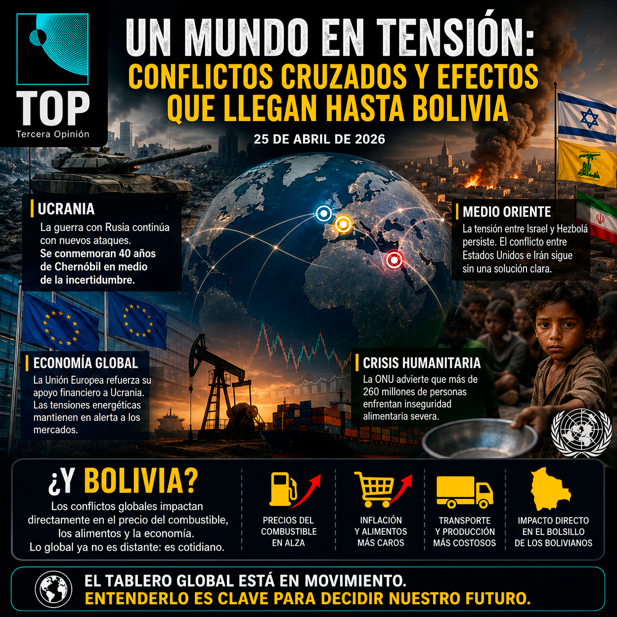 Aunque estos hechos ocurren a miles de kilómetros, sus efectos se sienten con claridad en países como Bolivia. Con los precios del combustible vinculados al mercado internacional, cualquier escalada en Medio Oriente o Europa repercute directamente en el costo del transporte, la producción y, en última instancia, en el bolsillo de la población.